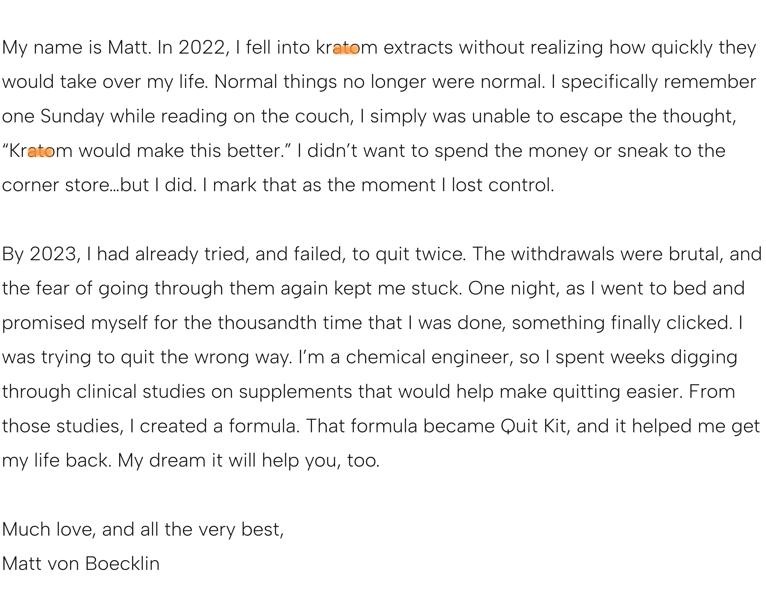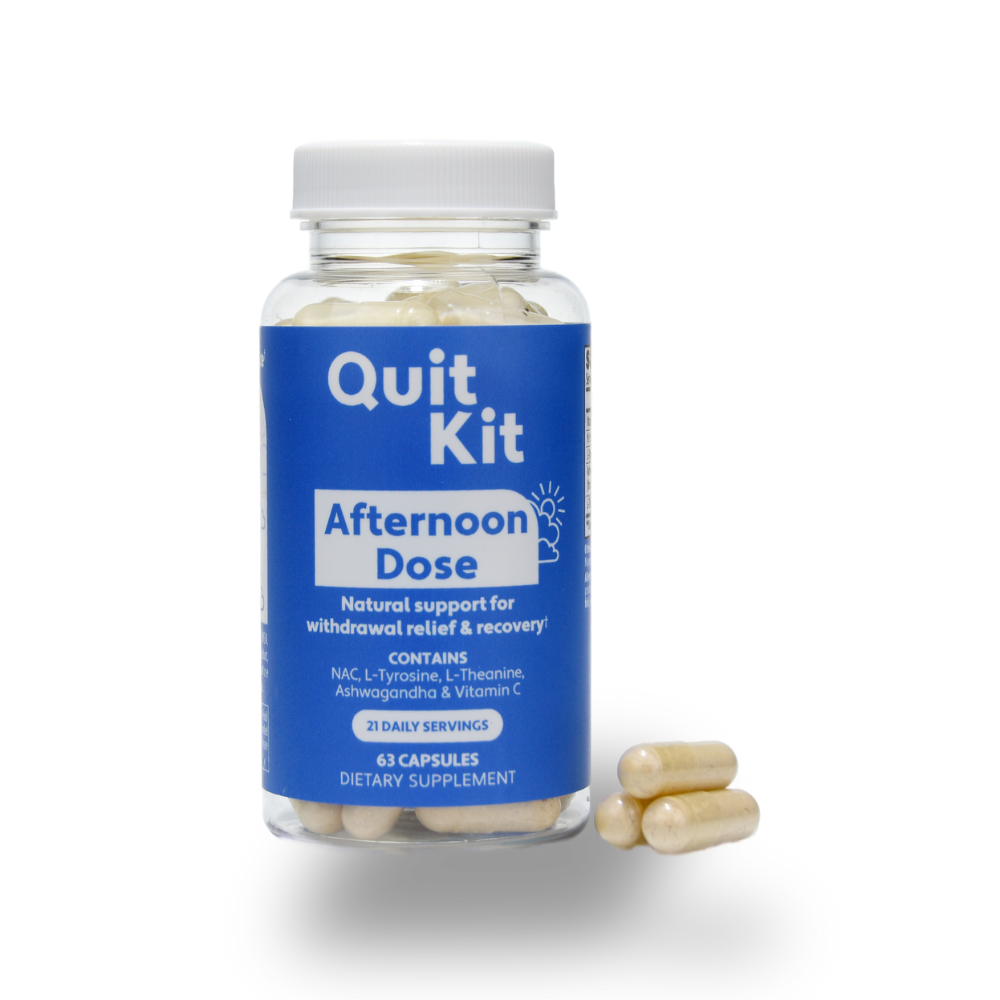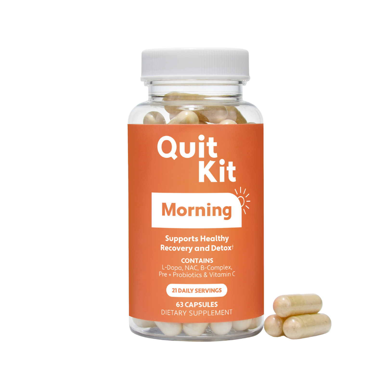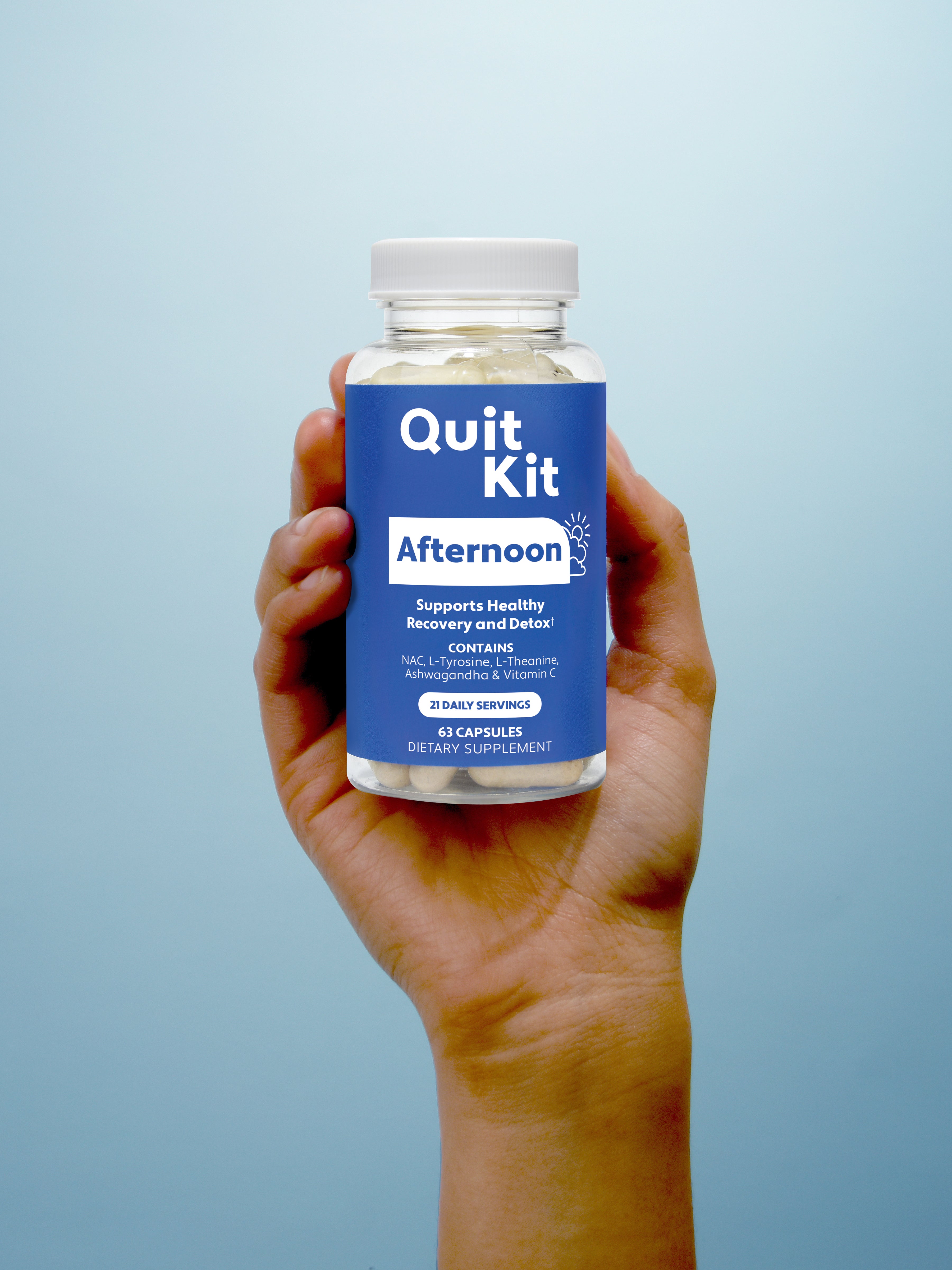 * Statements made on this website have not been evaluated from the FDA. This product is not intended to diagnose, treat, cure, or prevent any disease. Quit Kit is intended for adults 18 years and older. Consult a healthcare professional prior to use if you are pregnant or nursing, taking medications that may interact with the ingredients in Quit Kit, or have a medical condition.