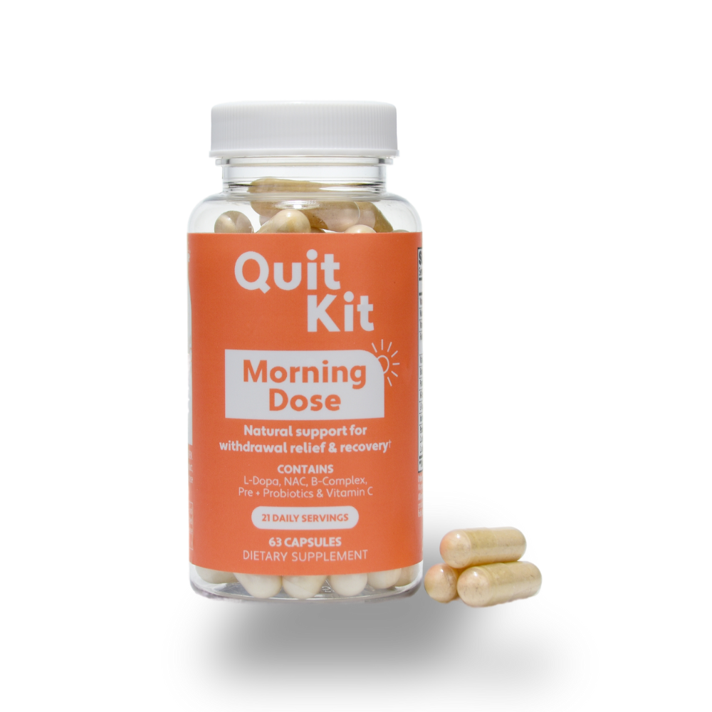 "The Quit Kit delivers what so many recovery tools miss: structure, simplicity, and genuine hope. Through a three-week, science-backed supplement protocol—taken morning, noon, and night—it supports your body and brain through withdrawal, healing, and the start of a new chapter."
