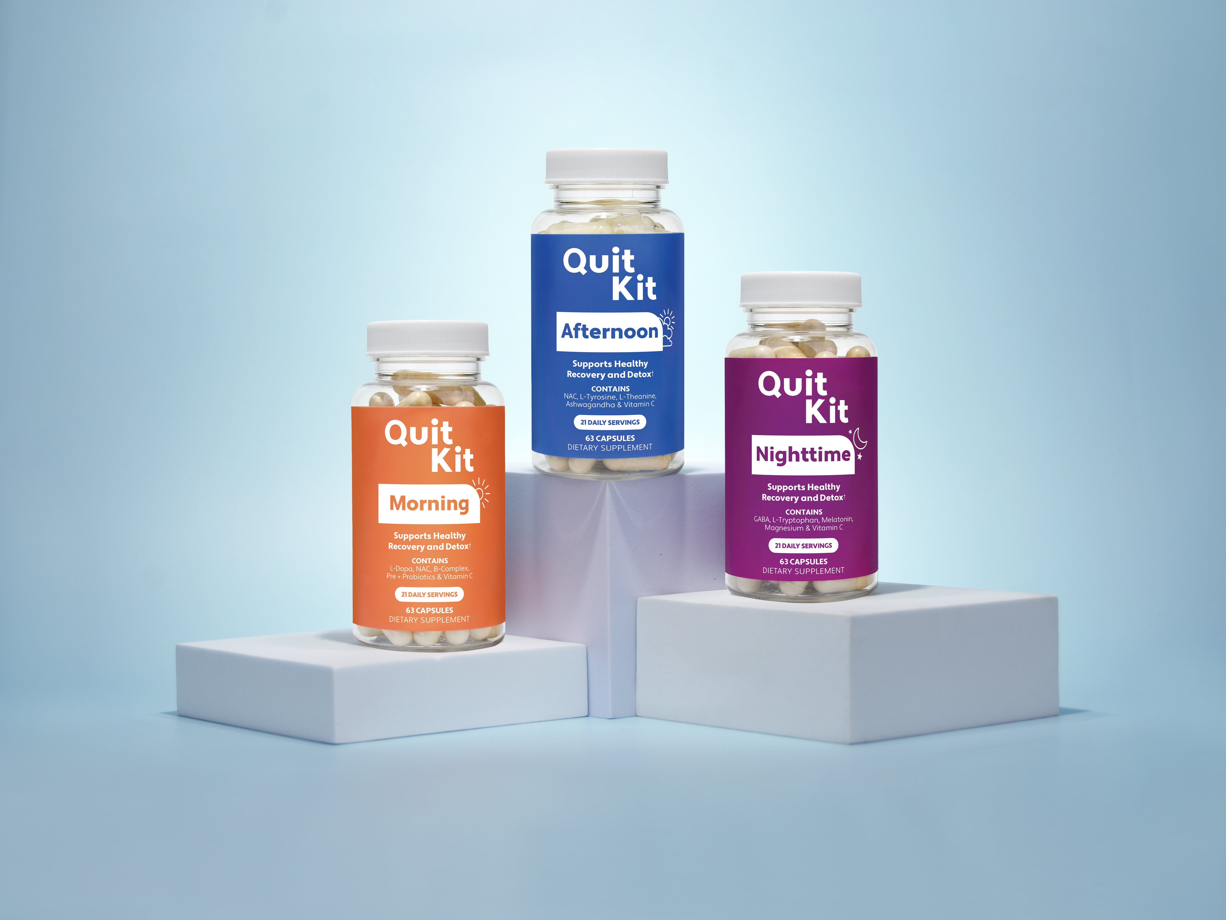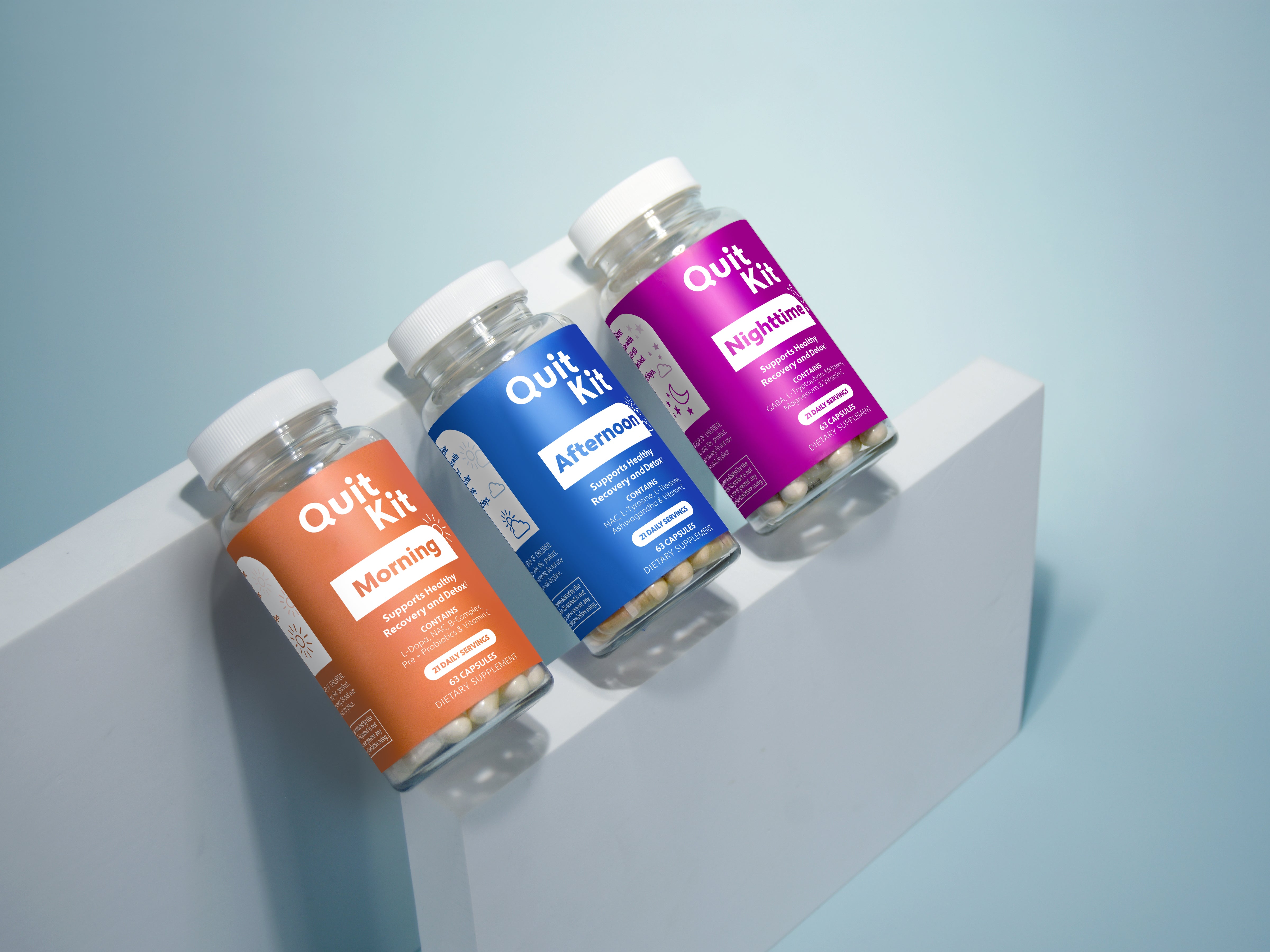 To maximize effectiveness, the Quit Kit is designed to be taken according to a fixed regimen. The regimen is as follows: